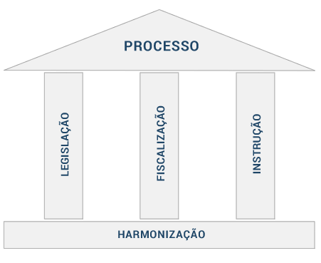 Podemos considerar que todo este processo se encontra sustentado em 3 fases distintas: a conceptualização pelo legislador dos normativos legais – a legislação – os quais integram objetivos políticos, técnicos e científicos, as ações de vistoria ou inspeção – a fiscalização – consubstanciadas na execução prática de todos os procedimentos tendentes à deteção das infrações praticadas nas atividades de captura, desembarque, cultura e comercialização das espécies marinhas, terminando na fase de instrução processual para procedimento contraordenacional – a instrução.