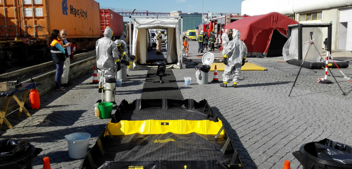 O exercício anual de Proteção do Porto de Lisboa, realizado ontem, dia 15 de outubro, no Terminal de Contentores de Alcântara concessionado à LISCONT, simulou a reação e coordenação das várias autoridades e entidades com competência na matéria, à deteção de substâncias químicas tóxicas, potenciadoras de um elevado número de feridos.