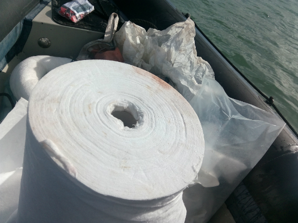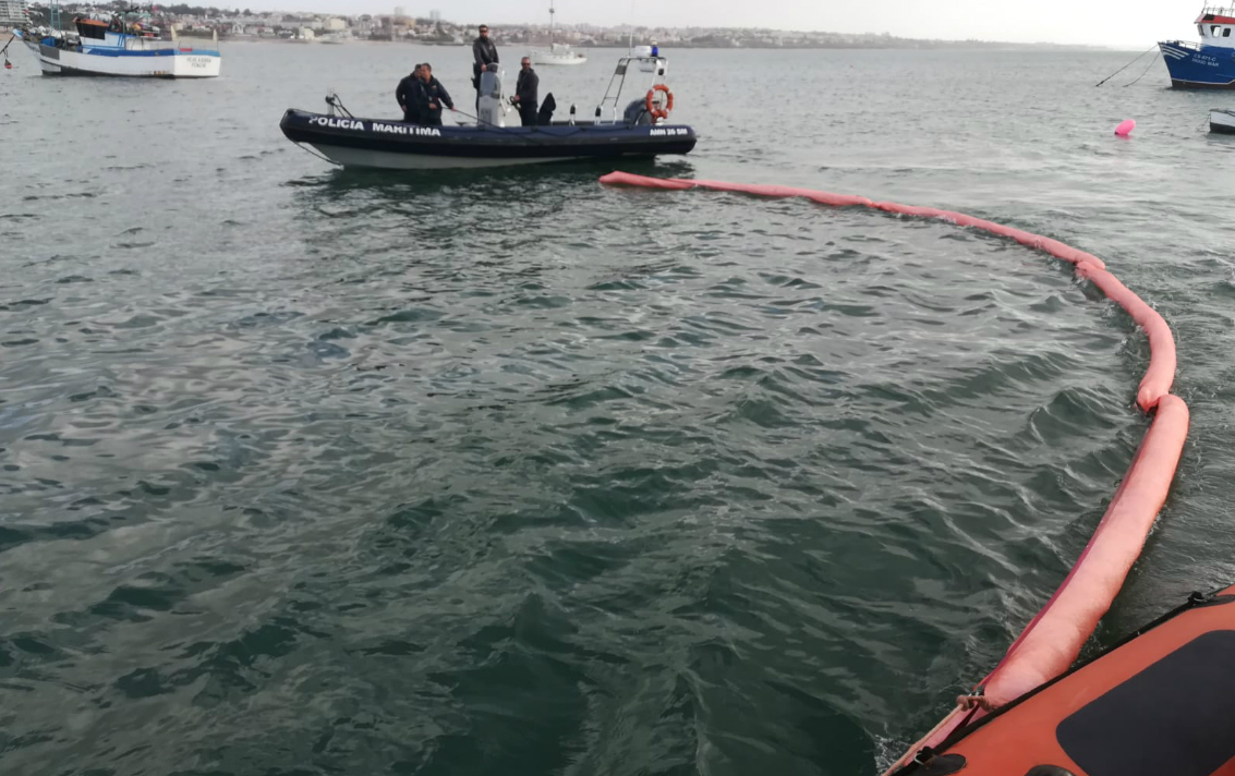 Foram colocadas barreiras de contenção, de modo a confinar o foco de poluição junto à amarração da embarcação de pesca, e utilizado material absorvente de hidrocarbonetos para realizar a sua recolha.