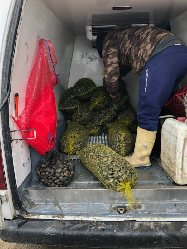 Desta ação, resultou a fiscalização de quatro apanhadores e uma viatura comercial que se encontrava carregada com cerca de meia tonelada destes bivalves, já acondicionados no seu interior sem os respetivos documentos de acompanhamento – Documento de Registo de Moluscos Bivalves, referentes à zona de produção dos mesmos.