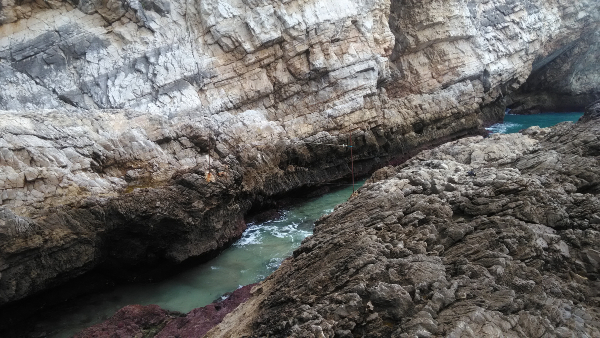 Polícia Marítima, abandonou o local iniciando uma escalada da falésia,