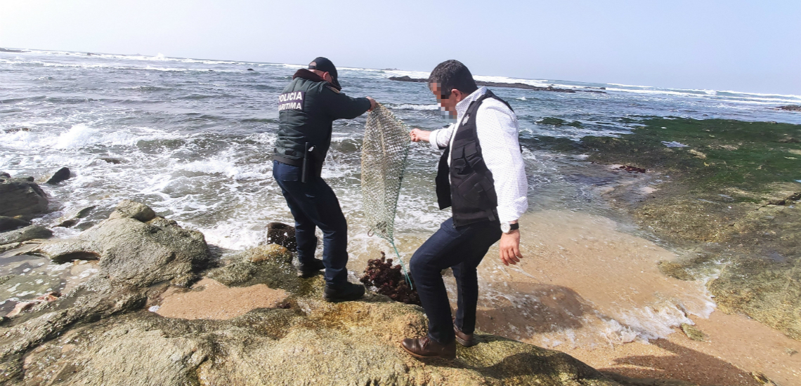 Durante a ação de fiscalização foram detetados dois indivíduos no exercício da atividade da apanha, que se puseram em fuga quando se aperceberam da presença dos agentes da Polícia Marítima, abandonando no local três sacos que continham os cerca de 87Kg de ouriços-do-mar.