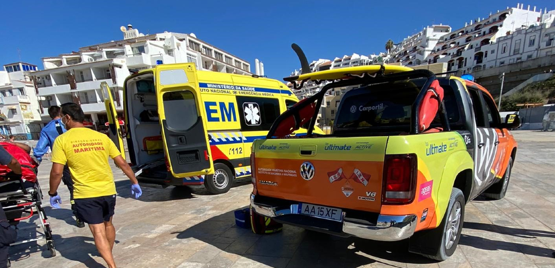 Voluntários de Albufeira e pela Viatura Médica de Emergência e Reanimação (VMER) do INEM.