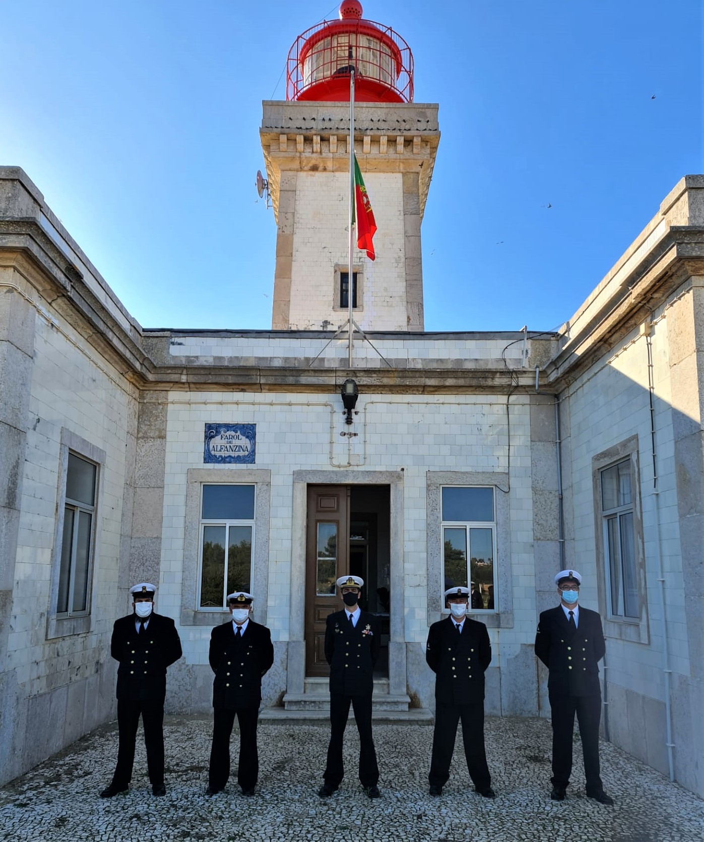 Salva-vidas de Ferragudo e os Faroleiros que prestam serviço neste Farol.