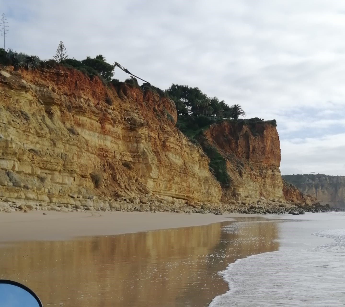 praia de Porto de Mós, assim como os trilhos de acesso à arriba, e elementos da