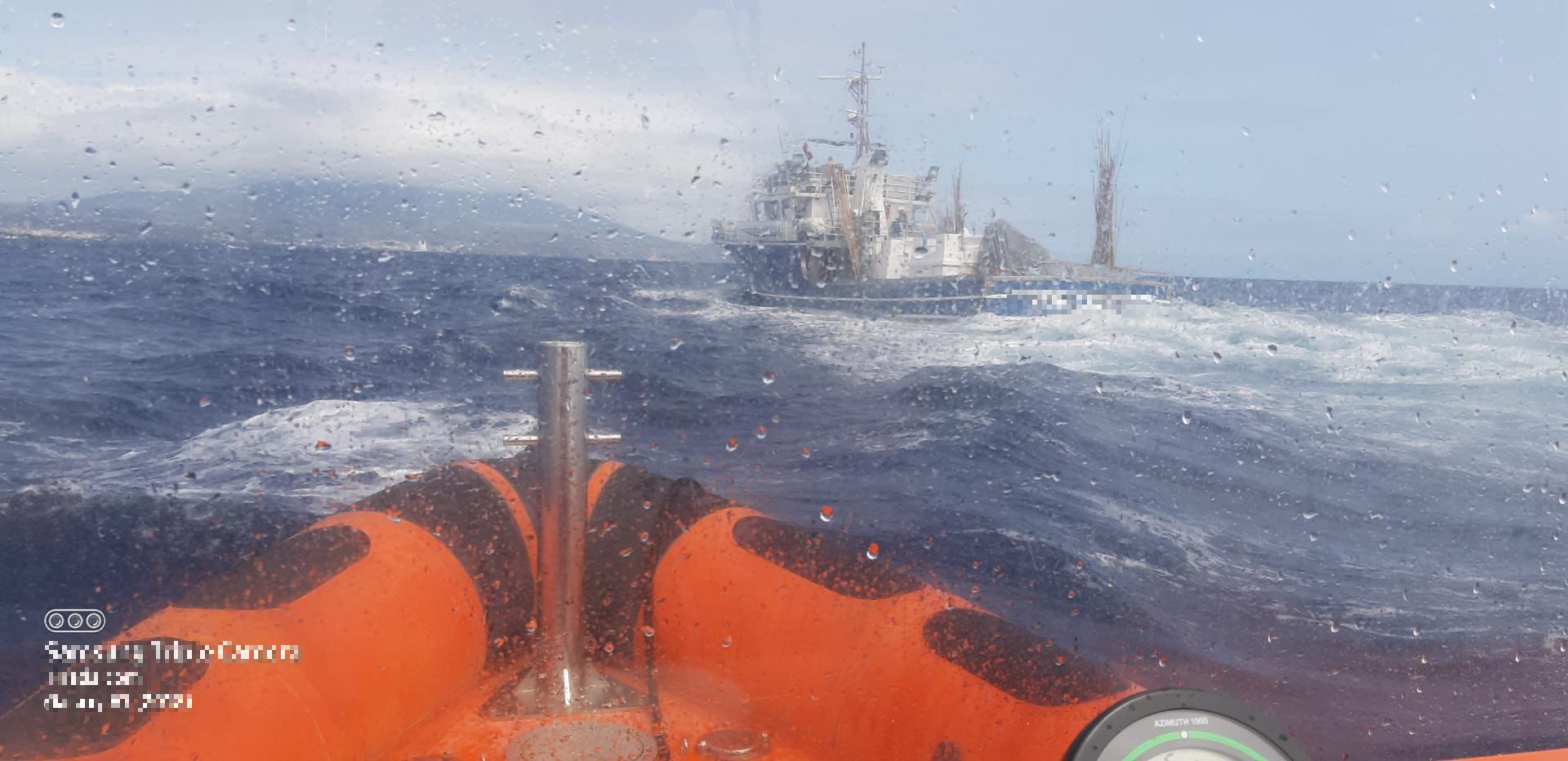 Os elementos do navio da Marinha “NRP Viana do Castelo”, que também se encontravam no porto de Ponta Delgada, colaboraram na atracação do navio de pesca.