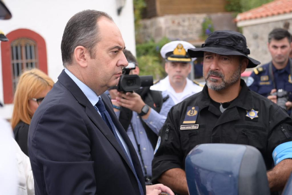 Nesta visita, o ministro grego visitou a cidade de Mitilene e a vila de Molivos, acompanhado pelo Comandante da Guarda Costeira Grega (Hellenic Coast Guard), Vice-almirante Alexandrakis Georgios, tendo visitado os meios da Guarda Costeira Grega e da Agência FRONTEX que se encontram a operar na missão "POSEIDON".