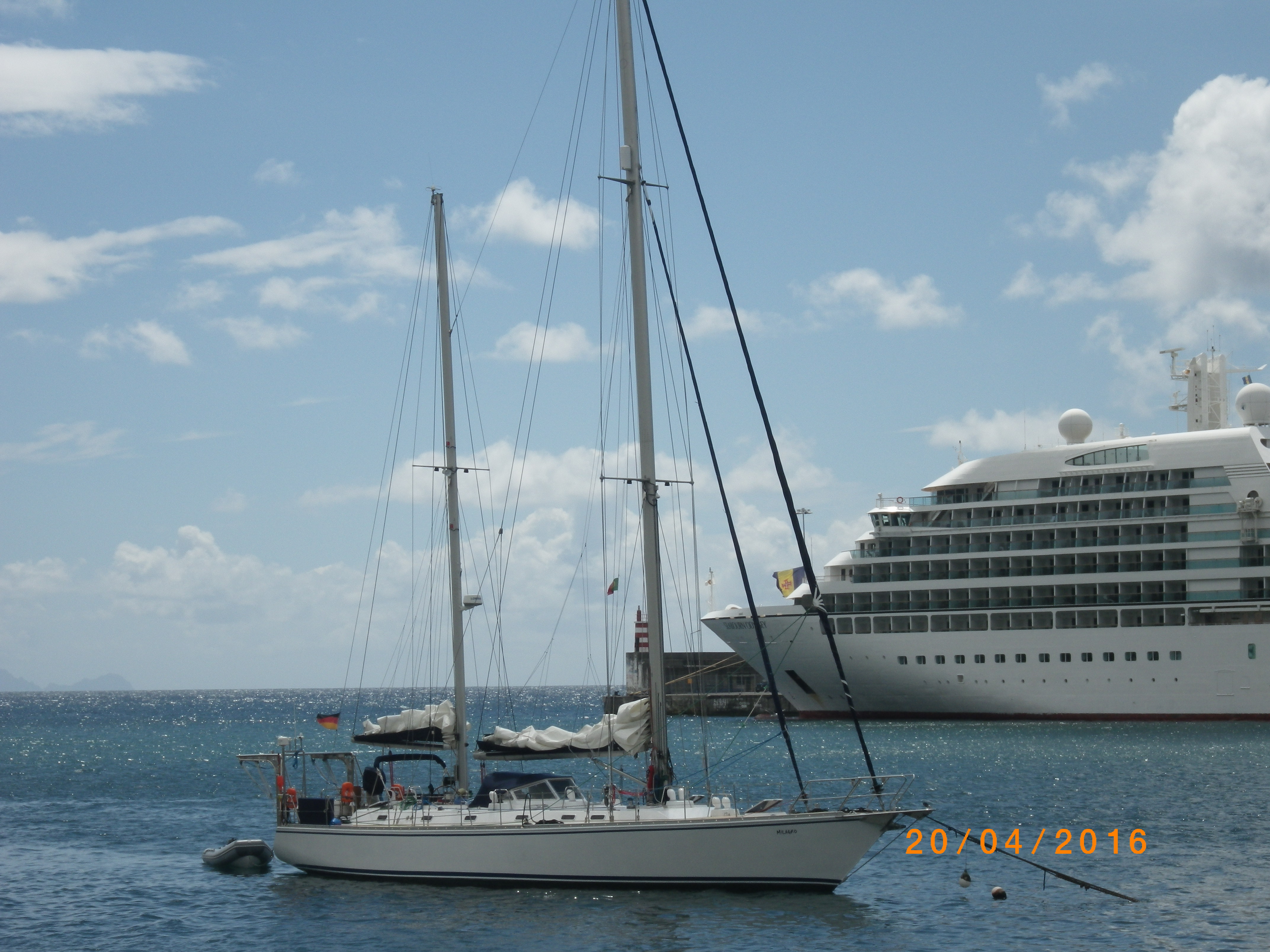 A embarcação de recreio, com 20 metros de comprimento e bandeira alemã, tinha a bordo sete tripulantes de nacionalidade alemã, encontrando-se todos bem de saúde.