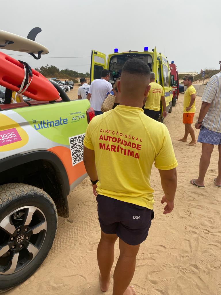 O homem foi retirado do areal pelos elementos do Projeto "SeaWatch", com recurso à viatura Amarok, tendo sido posteriormente transportada para unidade hospitalar pelo INEM.