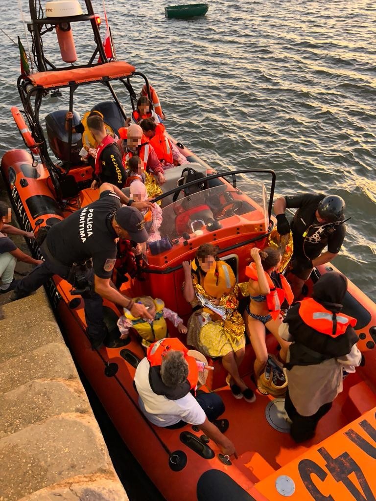À chegada ao local constatou-se que a embarcação acidentada transportava 16 pessoas, duas das quais eram os tripulantes da embarcação, nove adultos, entre os quais uma mulher grávida e cinco crianças com idades compreendidas entre os 2 e os 6 anos, que foram resgatadas do interior da gruta pelas embarcações da Polícia Marítima e da Estação salva-vidas de Ferragudo, com o apoio de uma mota de água de uma empresa marítimo-turística da praia de Benagil.