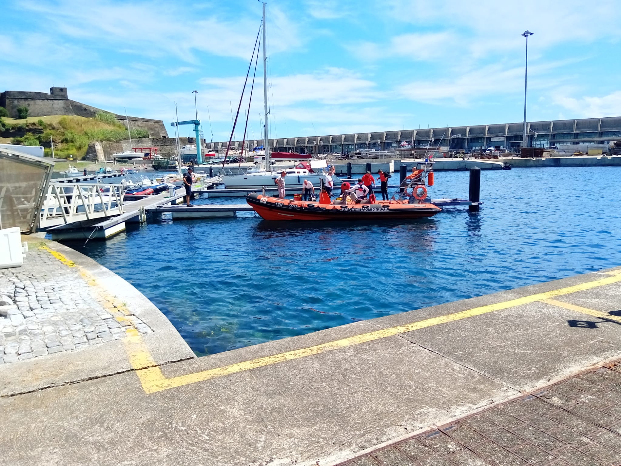 À chegada ao local, os tripulantes da Estação Salva-vidas constataram que a vítima, um homem de 58 anos, de nacionalidade polaca, se encontrava inconsciente, tendo de imediato procedido ao resgate e transporte para a Marina de Angra do Heroísmo, onde já estavam elementos do Suporte Imediato de Vida (SIV) e dos Bombeiros Voluntários de Angra do Heroísmo, que a assistiram e transportaram posteriormente para uma unidade hospitalar.