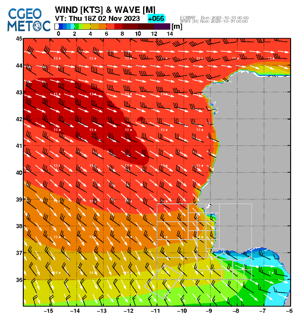 A agitação marítima será caracterizada por uma ondulação proveniente do quadrante Noroeste, com uma altura significativa que poderá atingir os 10 metros e uma altura máxima de 18 metros, com um período médio a variar entre os seis e os 12 segundos. São esperados ventos provenientes do quadrante Noroeste, com uma intensidade média de até 85km/h e rajadas até 150km/h.
