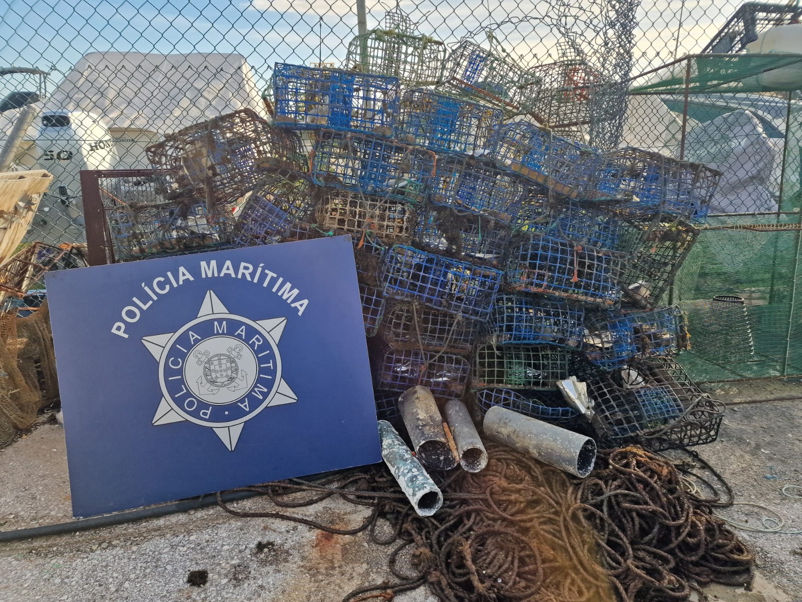 Durante esta ação, os elementos da Polícia Marítima detetaram uma arte de pesca, composta por 34 armadilhas para a captura de polvo, que se encontrava em local proibido, sem a devida sinalização, identificação e dimensões regulamentares, e quatro tubos de material PVC, que se constituem artes proibidas.
