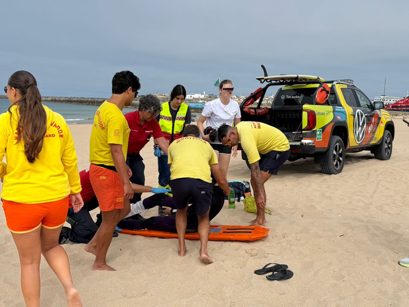 À chegada junto da vítima, constatou-se que tinha sido assistida e estabilizada pelos elementos dos Bombeiros Voluntários de Peniche, tendo os elementos do Projeto “SeaWatch" procedido à extração do areal até à ambulância dos Bombeiros, com recurso à viatura Amarok.