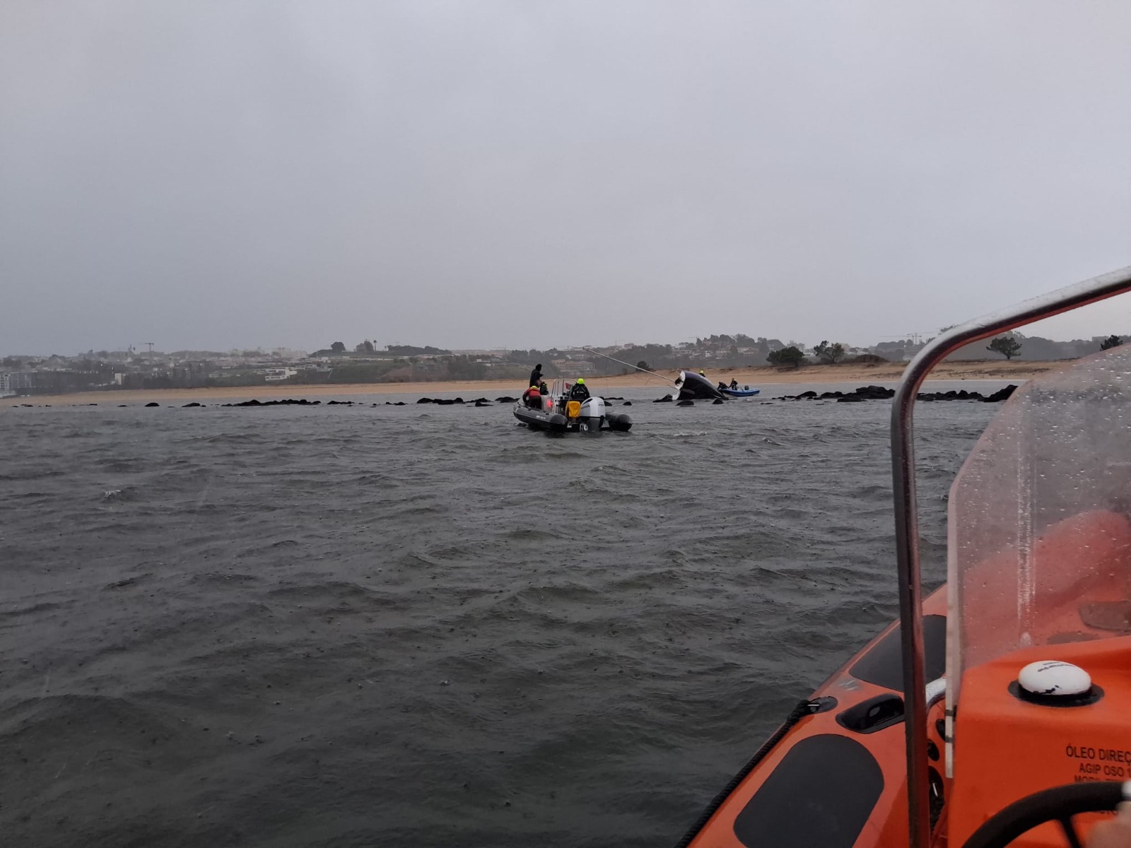 A embarcação, por constituir perigo para a navegação, foi posteriormente rebocada para a Douro Marina, pelas embarcações da escola de vela que se encontravam na zona.