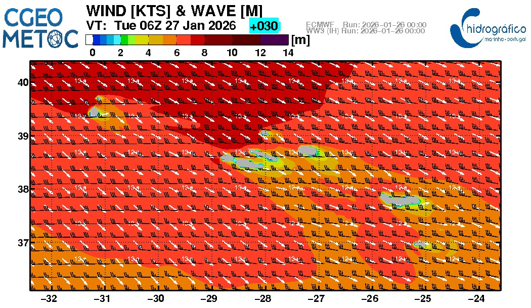 A agitação marítima será caracterizada por uma ondulação proveniente do quadrante noroeste, com uma altura significativa entre os seis e os oito metros, podendo atingir uma altura máxima de 14 metros, com períodos entre os 12 e os 13 segundos. São esperados ventos provenientes dos quadrantes oeste a oeste-sudoeste, com uma intensidade média que pode variar entre 55 e 85 km/h, e rajadas de até 110 km/h.