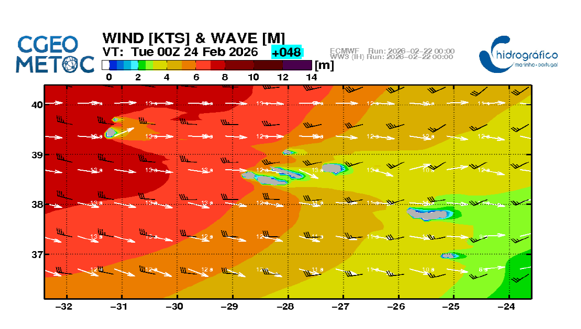 A agitação marítima será caracterizada por uma ondulação proveniente do quadrante oeste, com uma altura significativa que poderá atingir os 10 metros e uma altura máxima de 18 metros, com um período a variar entre os 11 e os 13 segundos. São esperados ventos provenientes do quadrante oeste, com uma intensidade média até 84km/h e rajadas até 152km/h.
