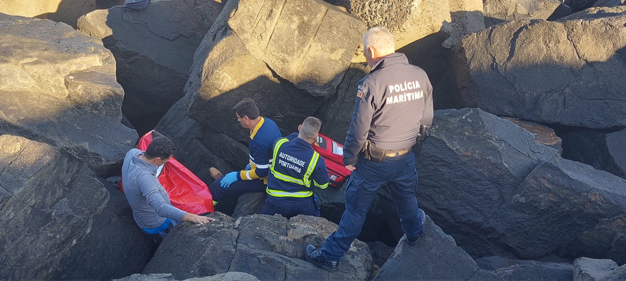 À chegada ao local, o pescador foi prontamente imobilizado em maca, tendo sido transportado em maca até à ambulância dos Bombeiros, que o assistiram até à chegada da Viatura Médica de Emergência e Reanimação (VMER) do INEM.