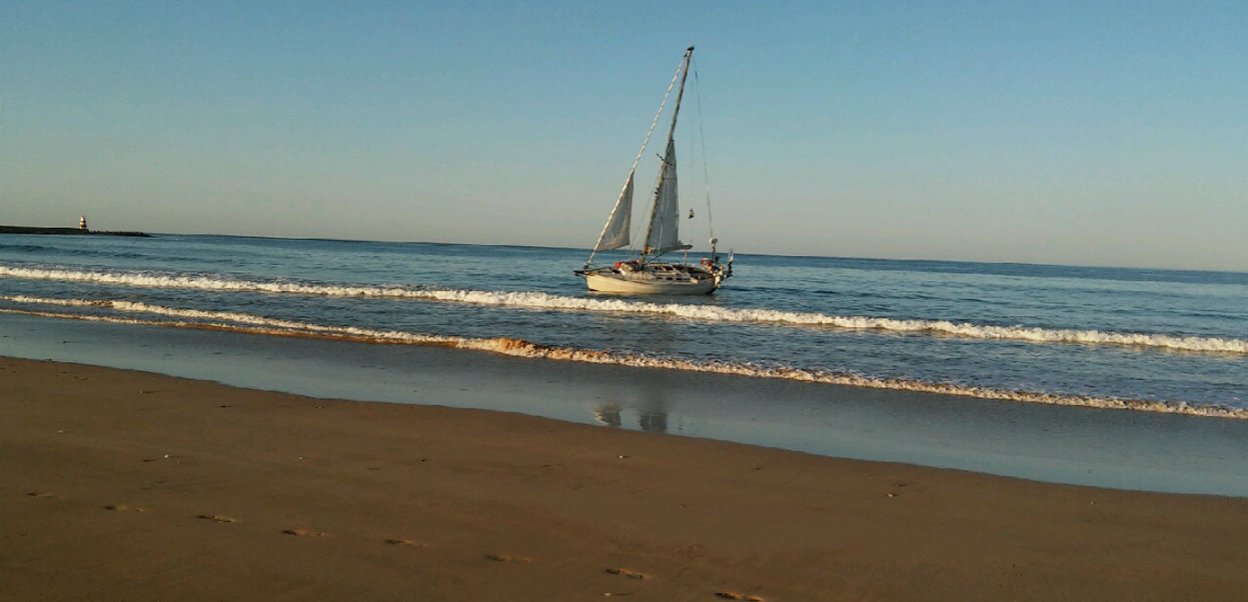 Desencalhe de veleiro na Praia da Rocha em Portimão