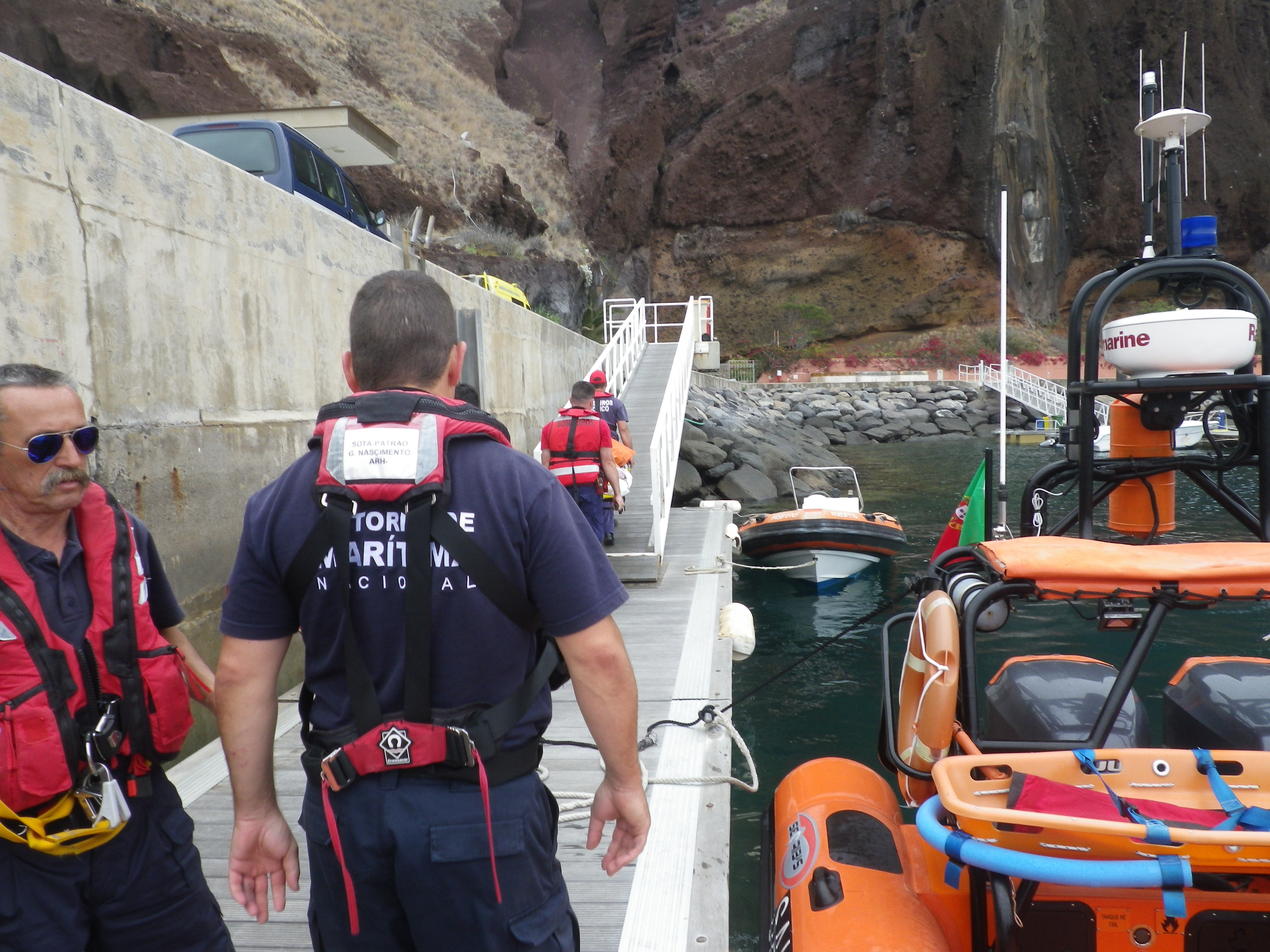 Foi empenhada uma embarcação Salva-vidas da Capitania do Porto do Funchal, a qual se dirigiu inicialmente para a marina da Quinta do Lorde, a fim de embarcar uma equipa dos Bombeiros Municipais de Machico. O resgate foi efetuado pelas 13h39 no Cais do Sardinha, tendo o desembarque ocorrido pelas 13h55 na marina da Quinta do Lorde, onde aguardava uma ambulância ativada pelo Serviço Regional de Proteção Civil.